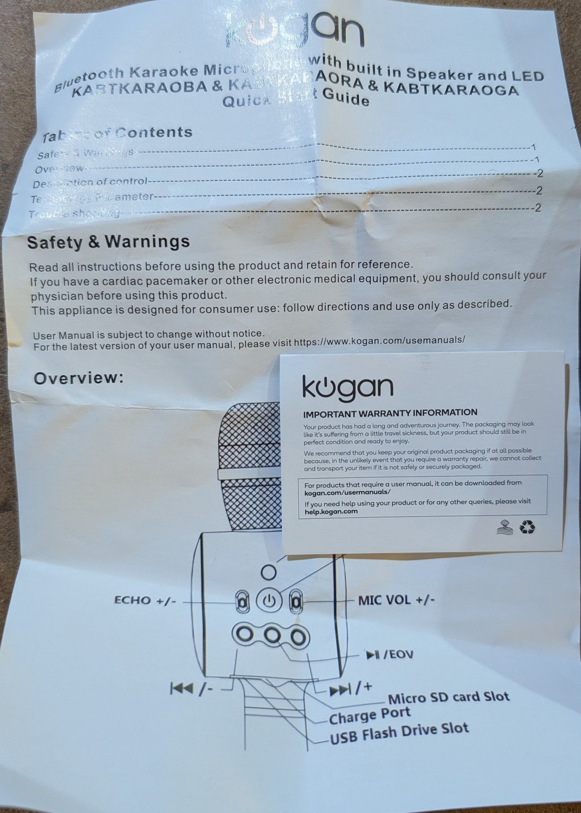 Kogan Bluetooth Karaoke Microphone with built-in Speaker and LED.